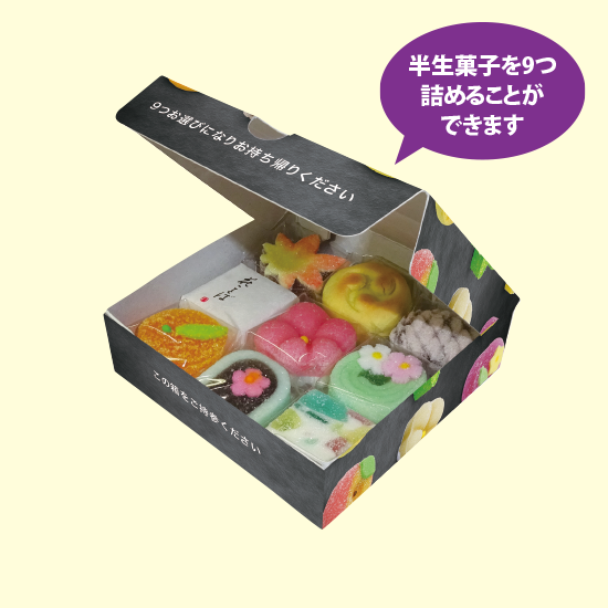 おしゃれな見た目の京の半生菓子詰め放題キットです。